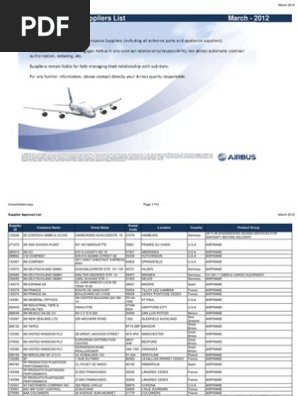 Airbus Approved Suppliers List As Of Januray 2013